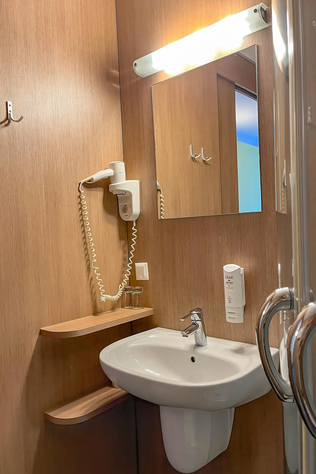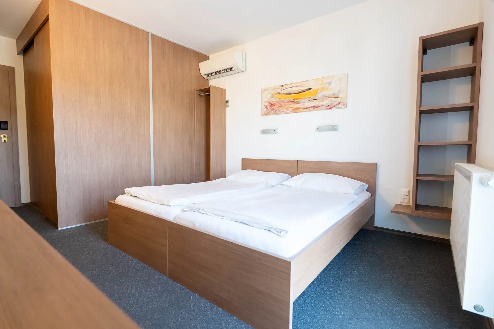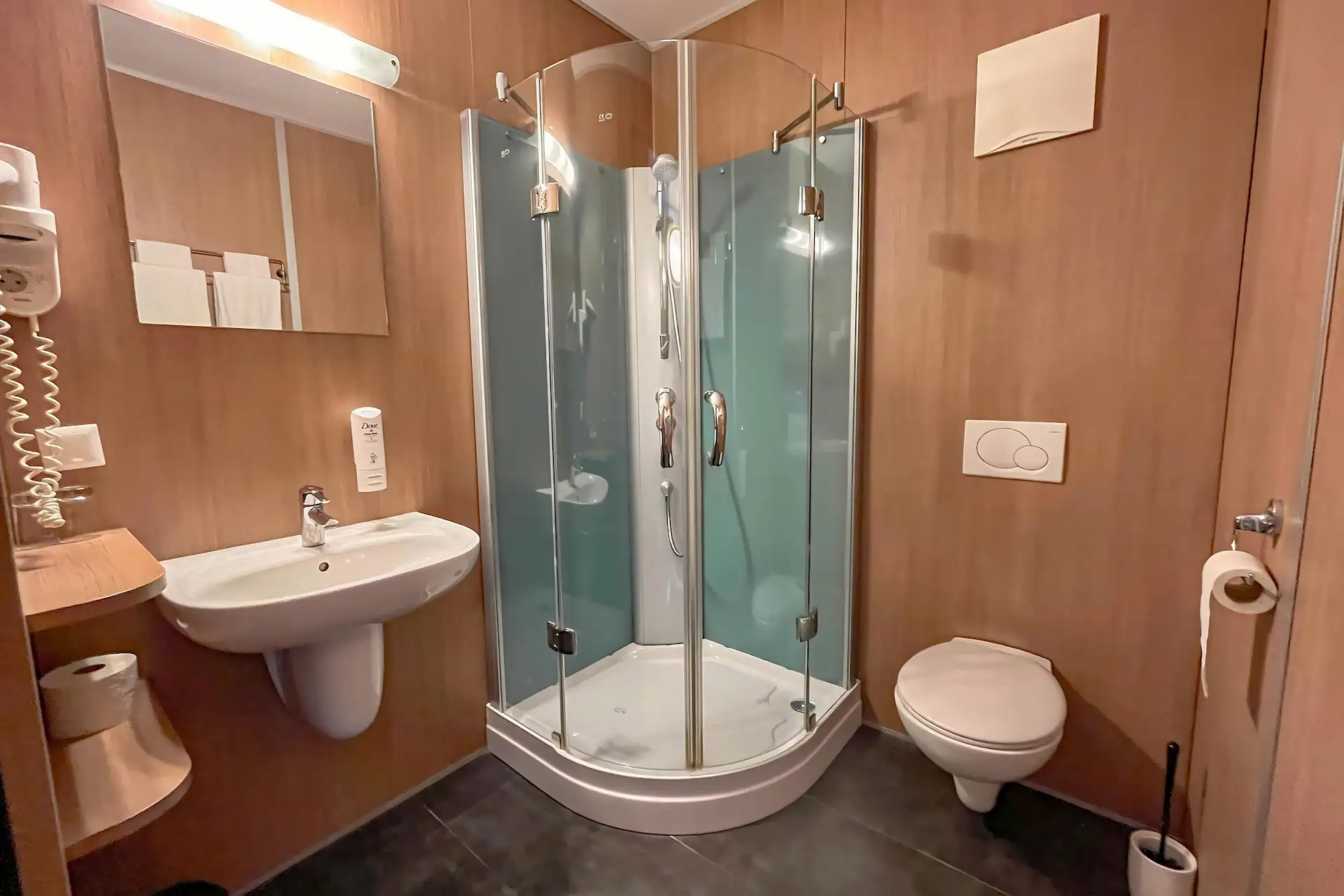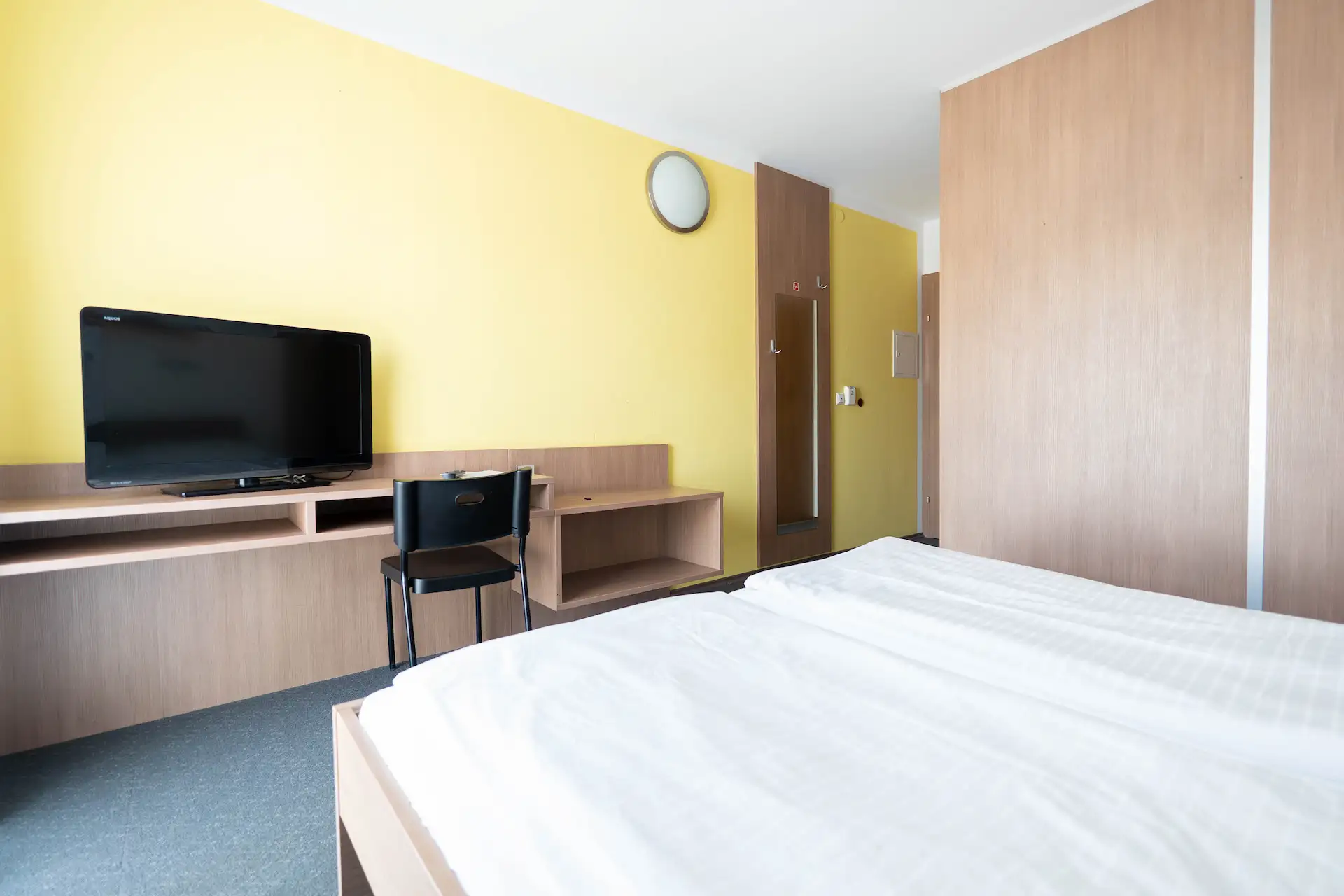 Unsere modernen Zimmer bieten Ihnen vollen Komfort und flexible Bettenlösungen. Die Betten können nach Wunsch auseinander- oder zusammengeschoben werden. Kinder ab 6 Jahren übernachten im Stockbett über dem Bett der Eltern.